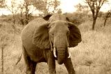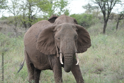 close up of an elephant in the serengeti Tanzania facing the camera, portrait, young adult elephant