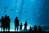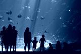 Silhouettes of People looking at Fish in huge Aquarium, Fish Tank