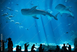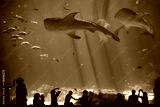 Children Silhouettes in large Aquarium with Fish and Whale Shark