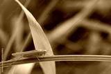 Grasshopper on a grass plant. Great Green Bush-Cricket Tettigonia viridissima. insect macro view, shallow depth of field, horizontal