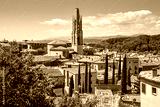 Panoramic aerial view of Girona with the tower of the Basilica of Sant Feliu visible, Catalonia, Spain.