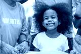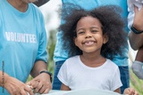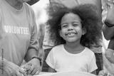 Young girl with curly hair is smiling