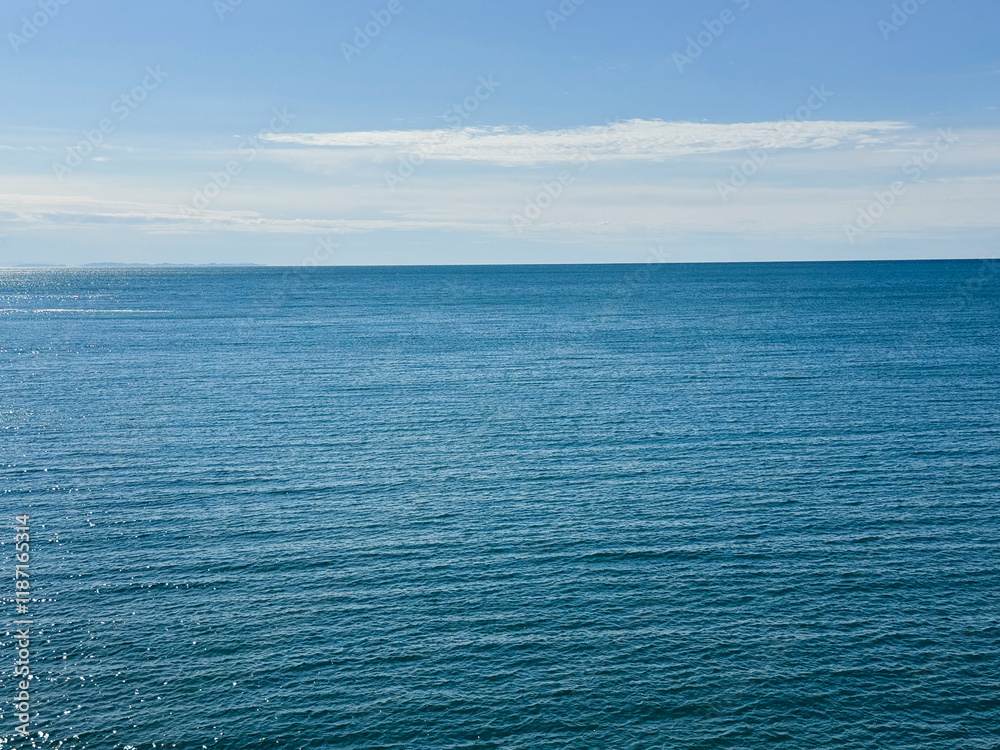 Blue wide sea and clear sky horizon.