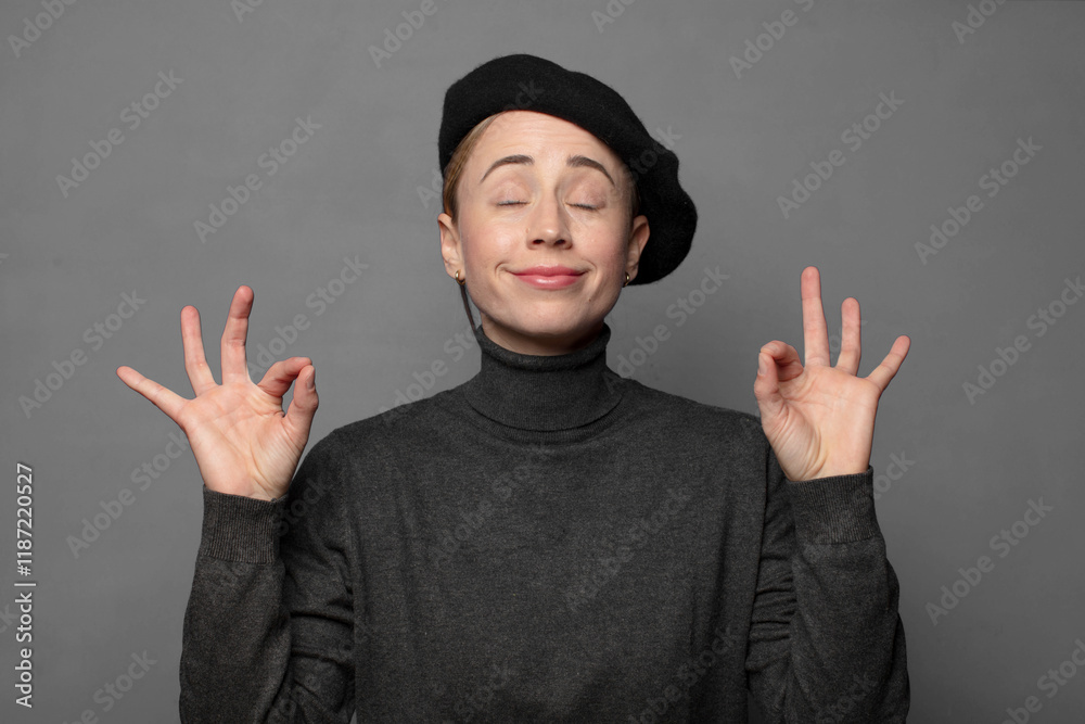 looking concentrated and meditating, feeling satisfied and relaxed, thinking or making a choice