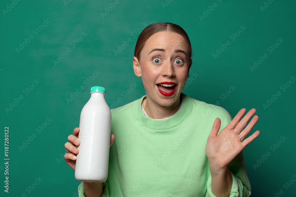 young blonde woman with a milk bottle