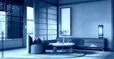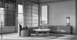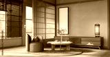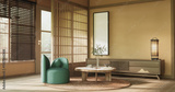 Mocha concept Scene living room have green sofa and decoration wooden minimalist design, room japanese style.