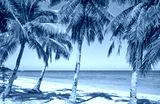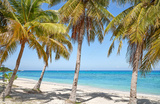 Coconut palm trees on a beautiful beach on Malapascua Island, Philippines.