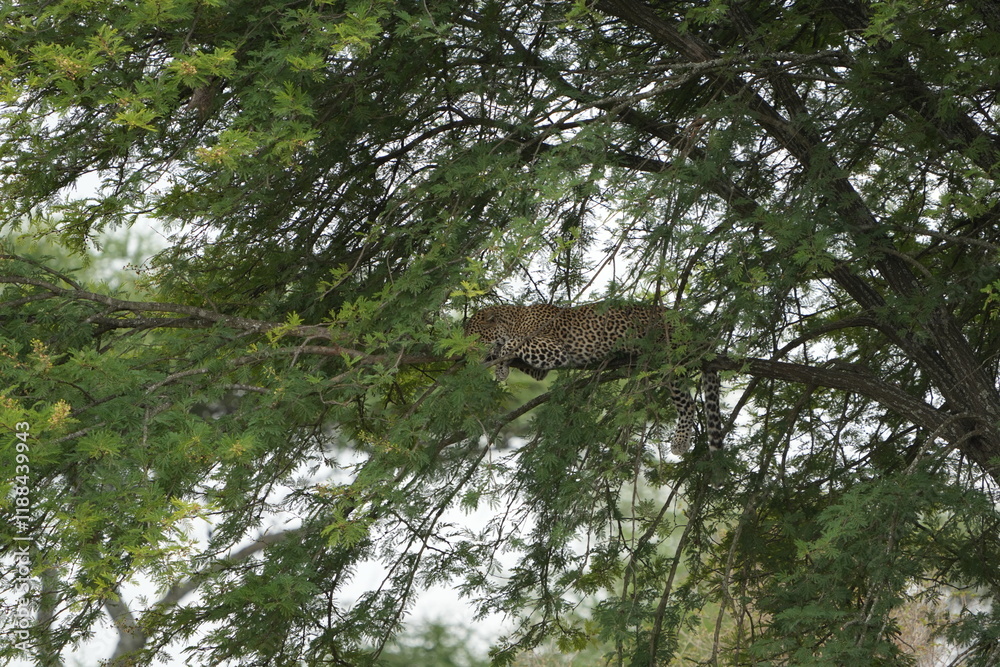 leopard resting and chilling in the tree in the serengeti national park tanzania