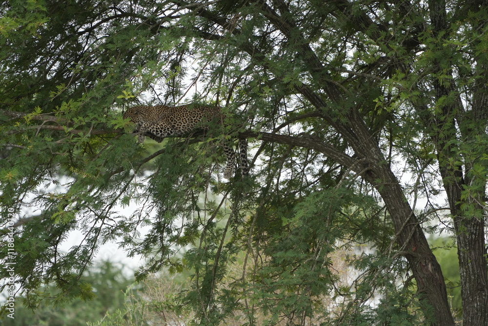 leopard resting and chilling in the tree in the serengeti national park tanzania