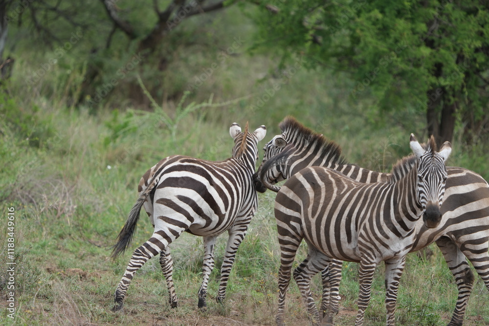 close up of a herd of zebras walking across the serengeti national park in tanzania, wildlife photography