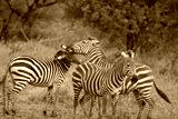 close up of a herd of zebras walking across the serengeti national park in tanzania, wildlife photography