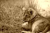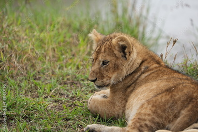 lion cub panthera leo in the grass of the savannah portrait serengeti national park