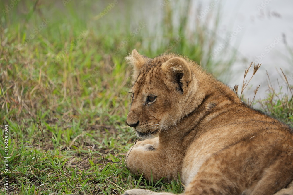 lion cub panthera leo in the grass of the savannah portrait serengeti national park