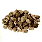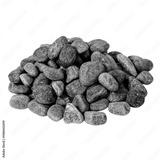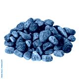Dry rough round dark stones stacked in a pyramid on a white background