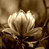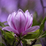 A close-up photo of a pink tulip-shaped magnolia flower.