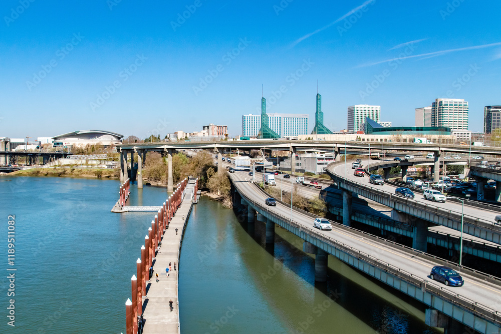 Eastbank Esplanade Bike Path Along Willamette River With City Skyline