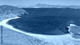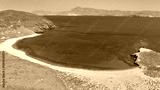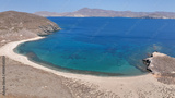 Aerial drone photo of secluded paradise sandy beaches and natural sand dunes in inhabited small island of Antipsara, North Aegean sea, Greece