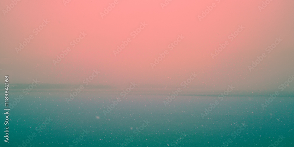 Beach seascape in snow at sunrise: a tranquil winter shore in New England of America