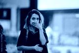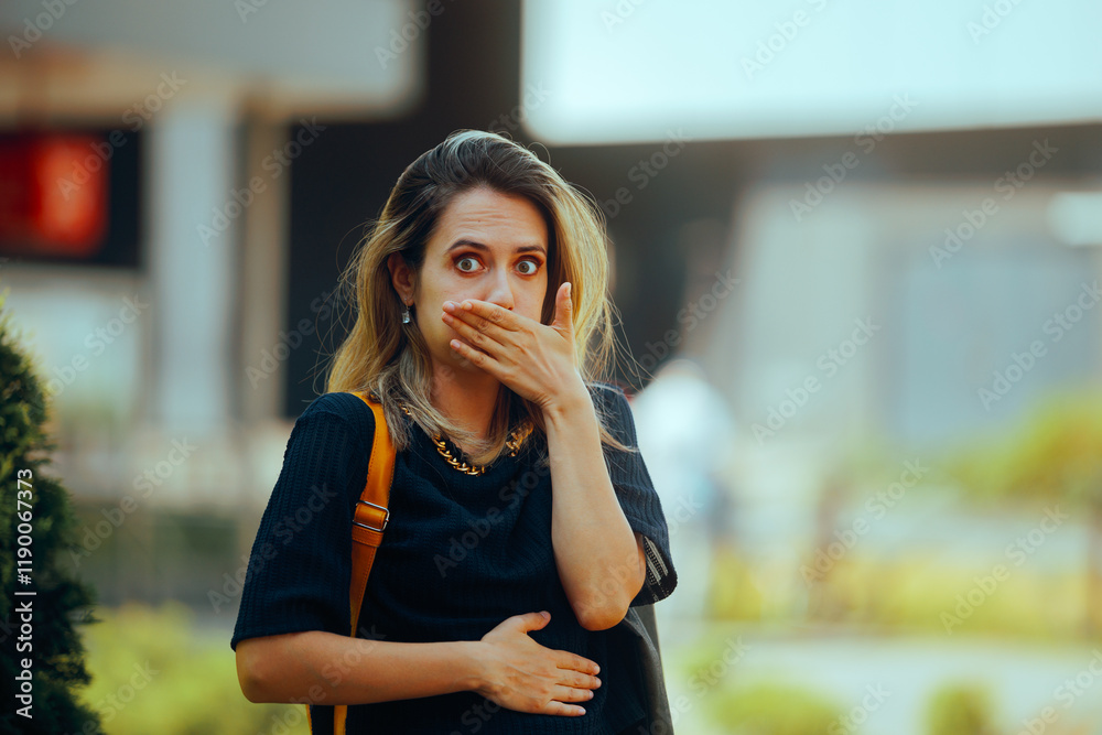 Sick Woman Feeling Nauseated Outdoors Manifesting Symptoms. Queasy pale lady being dizzy about to faint