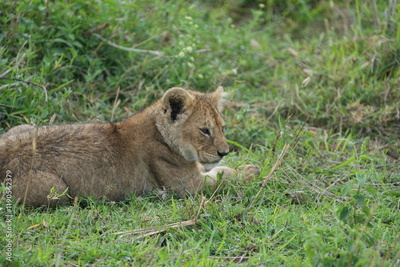lion cub panthera leo laying in the grass of the serengeti national park