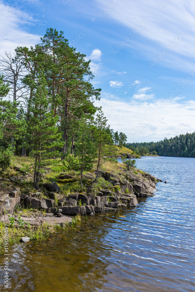 Landscape coastline Monastery Bay of Valaam island.
