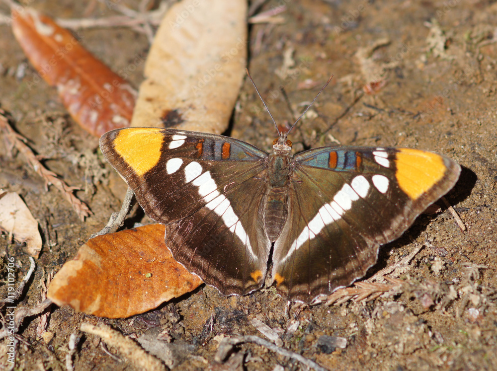 California Sister(Adelpha californica) perched on the ground. Santa Cruz County, California, USA.