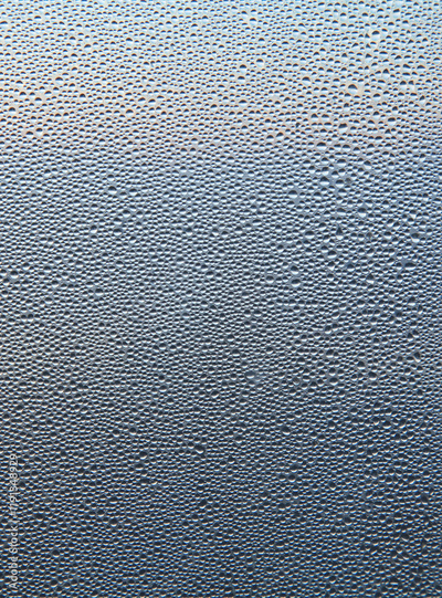 Backdrop, background created of small drops of condensation or rain. Drops on glass in the form of sparkling balls in perfect order. Condensation on the glass surface. Gray water droplets texture