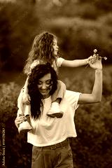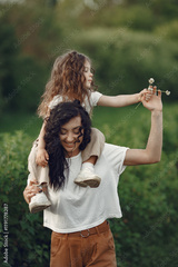 Mother with daughter playing in a summer field