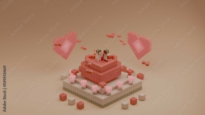 Heart shaped wedding made with cubes. 3d pixel style vector illustration in voxels