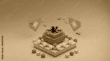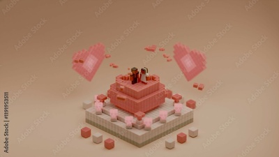 Heart shaped wedding made with cubes. 3d pixel style vector illustration in voxels