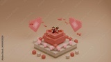 Heart shaped wedding made with cubes. 3d pixel style vector illustration in voxels