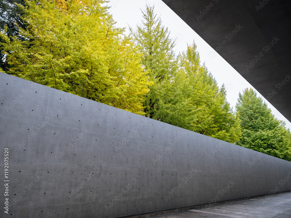 Cement concrete wall Modern building with Green landscape Outdoor space Architecture details