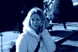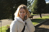 Woman talking on the phone in a city park, holding a gadget during a conversation, engaging in digital communication in an outdoor garden.