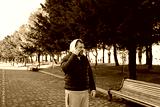 Man talking on the phone in a city park, discussing work on a mobile phone near trees, urban lifestyle surrounded by nature.