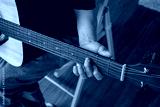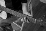 Hand Playing Acoustic Guitar Close-Up, person studying musical patterns on guitar, playful hobbyist learning new techniques indoors
