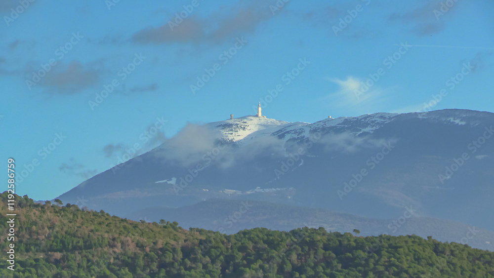 vue du Mont Ventoux en hiver sous un ciel bleu