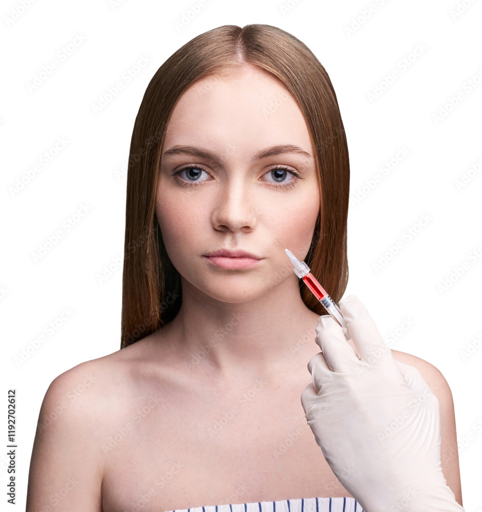 Young caucasian female receiving cosmetic injection for skin treatment