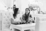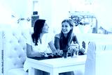Portrait of teenage daughter and her mother having lunch together at the street cafe.