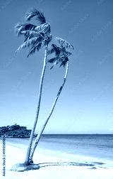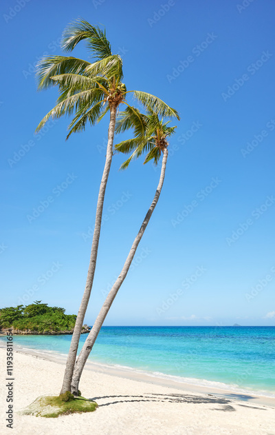 Coconut palm trees on the beach on Malapascua Island, Philippines.