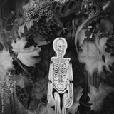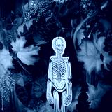 Halloween wreath with skeleton hanging on a front door