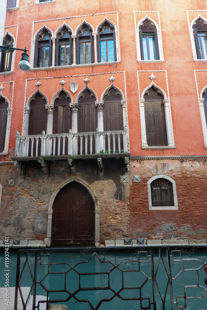 Beautiful building next to a canal in the city of Venice, Italy.