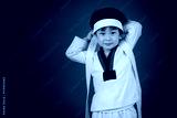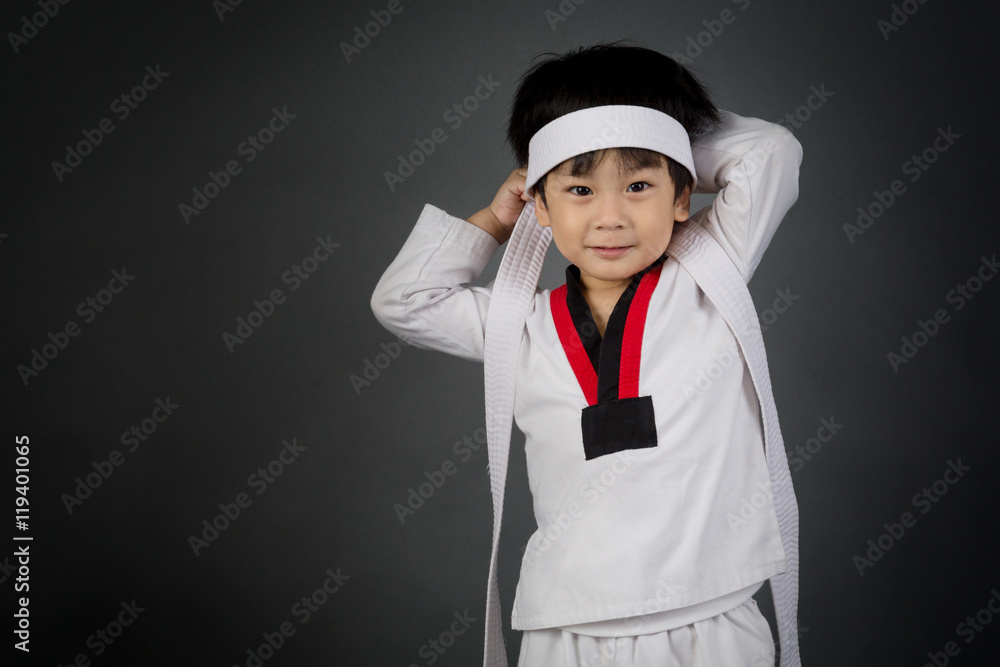 Asian cute child training in TAEKHONDO uniform