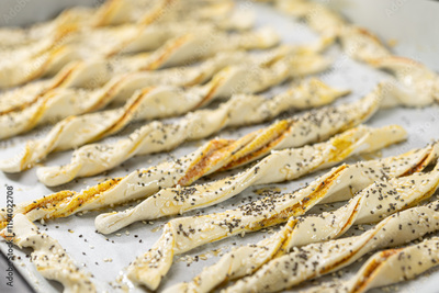 Salty and crispy puff pastry with sesame and chia seeds