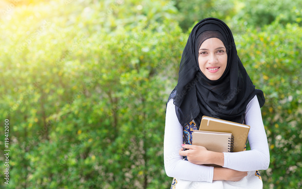 Happy Indian woman holding notebook paper.