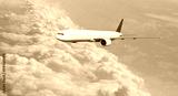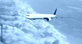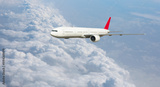 White passenger airplane flying in the sky amazing clouds in the background - Travel by air transport