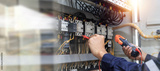 Checking the electrical system, an electrician is using an electric meter to check the electrical system at a control cabinet. for safety