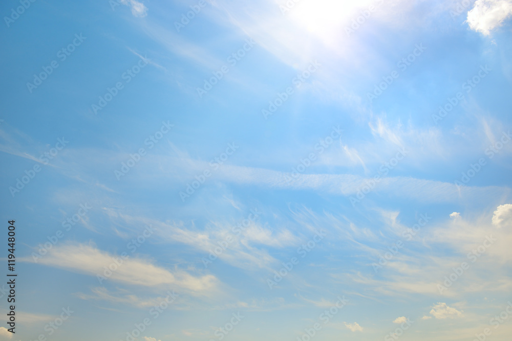 Blue sky with bright sun.