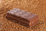 Delicious chocolate cake on instant cofee background