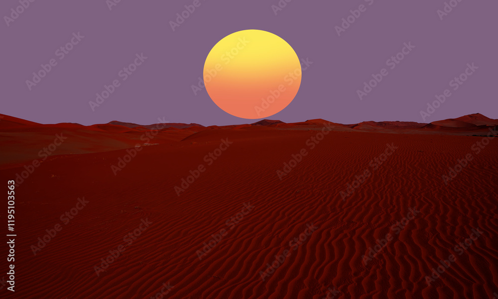Sand dunes in the Sahara Desert at amazing sunrise, Merzouga, Morocco - Orange dunes in the desert of Morocco - Sahara desert, Morocco