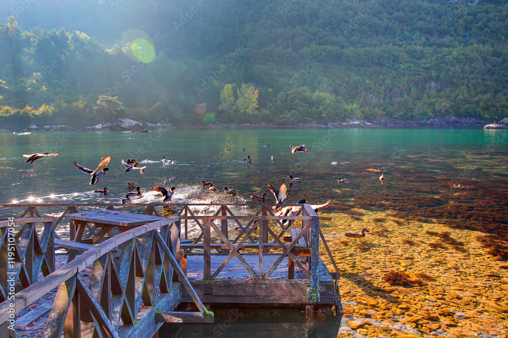 Beautiful landscape of Gideros Bay with wooden pier - Cide, Kastamonu, Turkey